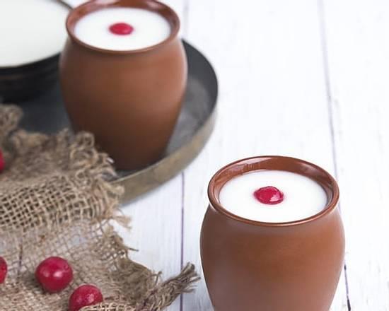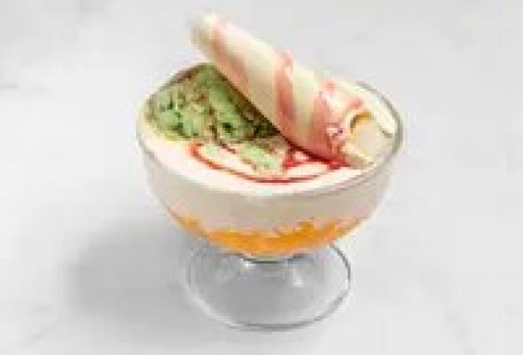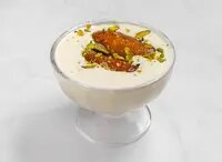 A special sundae drink made with ice ream, falooda, basil seeds and rose syrup