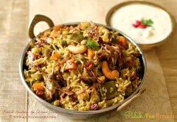 Buttered rice topped with English vegetables, mushrooms in a spicy coriander gra...