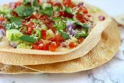 Fried pappadum garnished with fine chopped onion, tomato, green chilies & corian...
