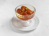 Gulab jamun served on base of rabdi (condensed milk) and garnished with dry frui...