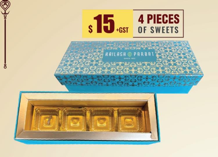 Choose any 4 sweets with 1 piece each. Taste bhi, health bhi